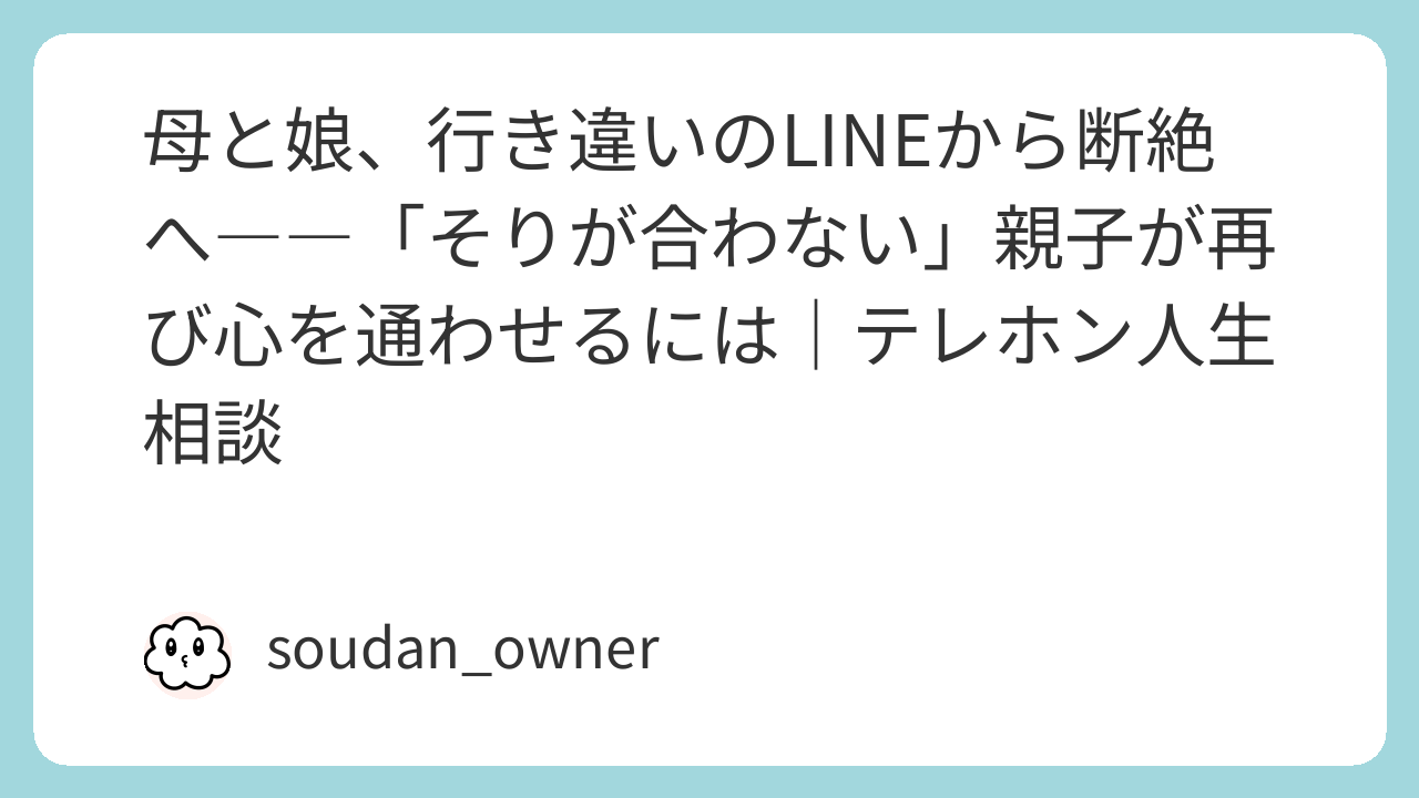 母と娘、行き違いのLINEから断絶へ――「そりが合わない」親子が再び心を通わせるには|テレホン人生相談